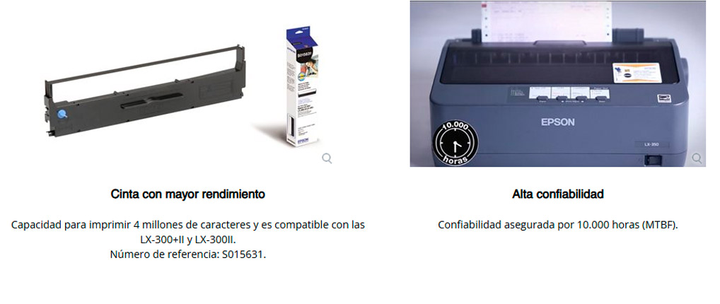 • Impresión rápida y confiable: tecnología de 9 pines, hasta 390 cps y 10.000 horas de uso.